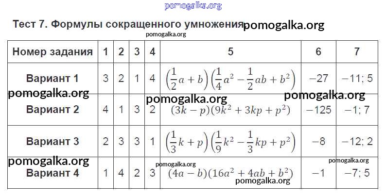Готовые ответы - Алгебра 7 класс тематические тесты Дудницын Ю.П. - тест 7