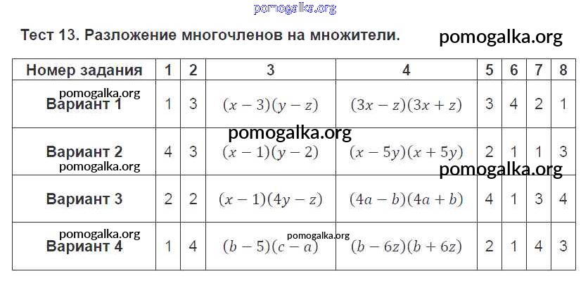 Готовые ответы - Алгебра 7 класс тематические тесты Кузнецова Л.В. - тест 13