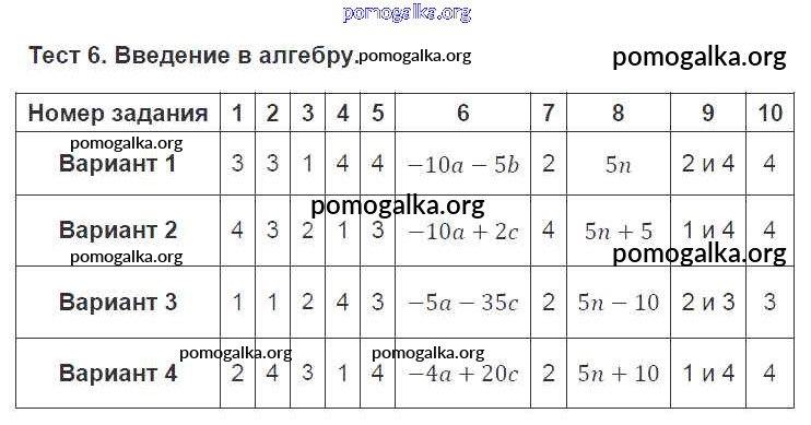 Готовые ответы - Алгебра 7 класс тематические тесты Кузнецова Л.В. - тест 6