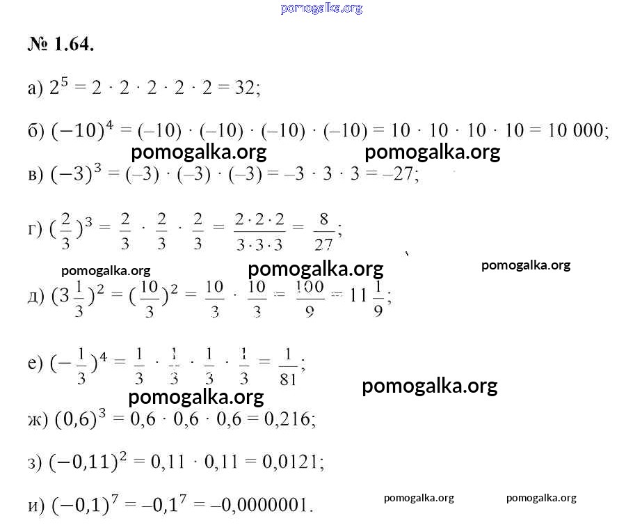 Готовые ответы - Алгебра 7 класс Арефьева И.Г. - глава 1 1.64