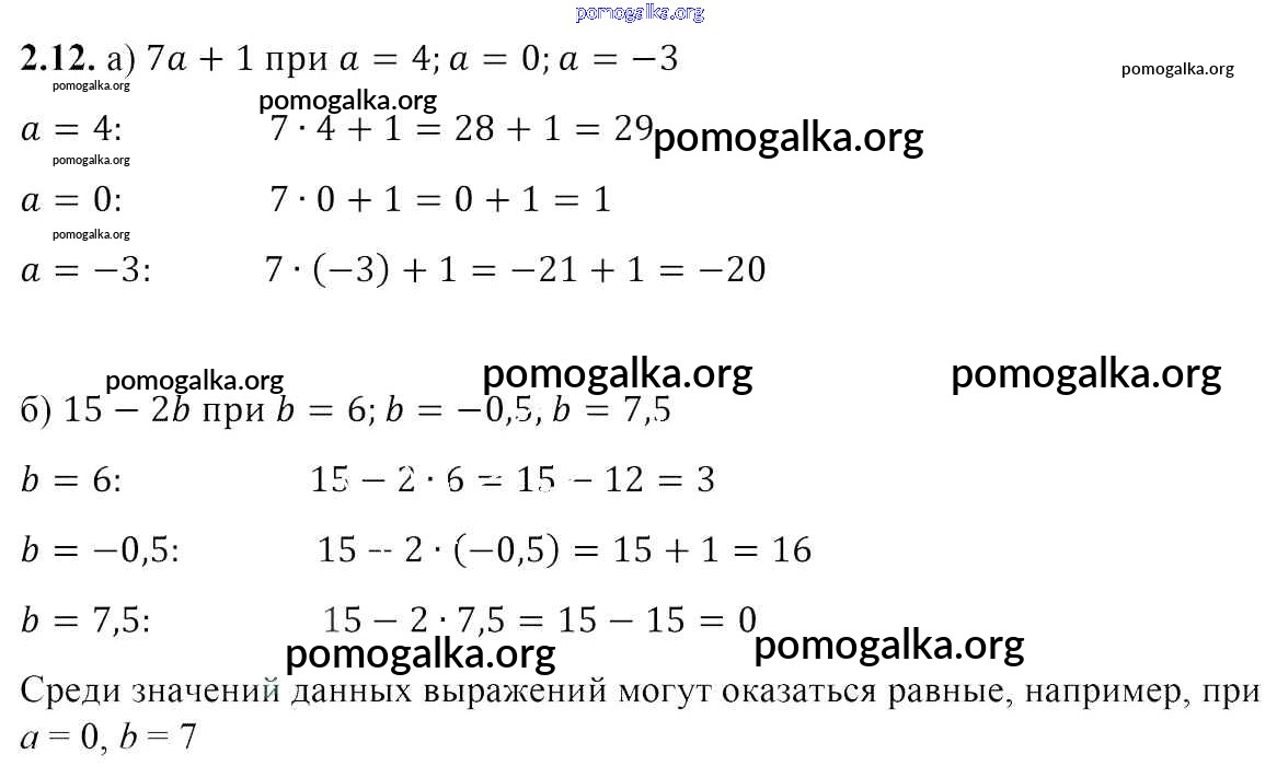 Готовые ответы - Алгебра 7 класс Арефьева И.Г. - глава 2 2.12