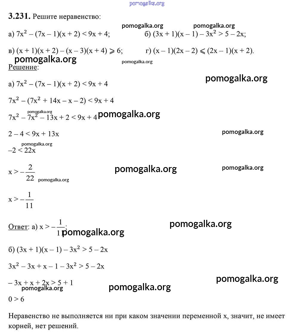 Готовые ответы - Алгебра 7 класс Арефьева И.Г. - глава 3 3.231