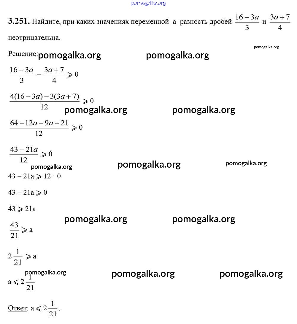 Готовые ответы - Алгебра 7 класс Арефьева И.Г. - глава 3 3.251