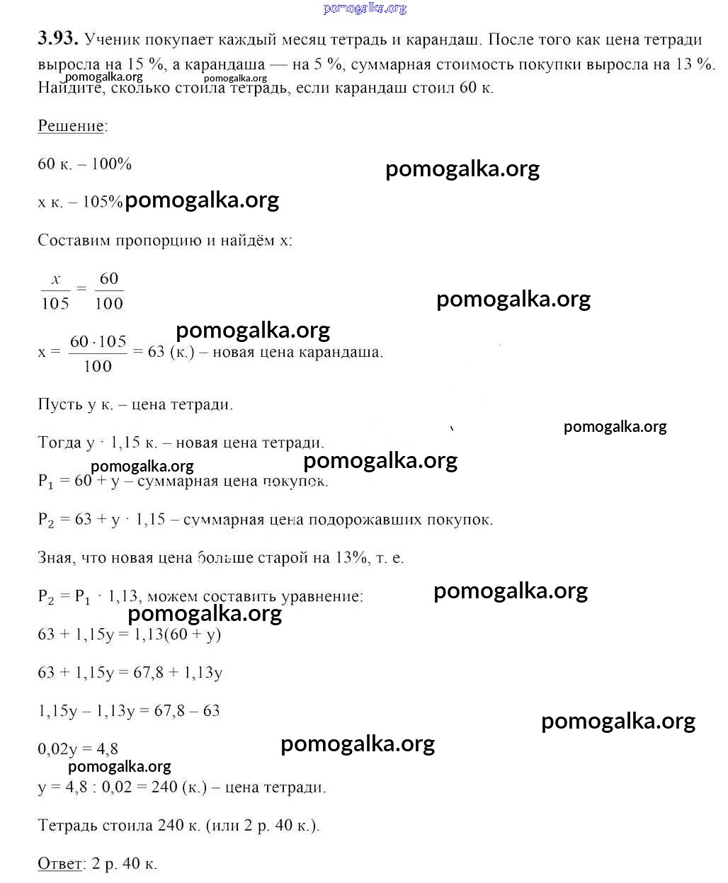 Готовые ответы - Алгебра 7 класс Арефьева И.Г. - глава 3 3.93