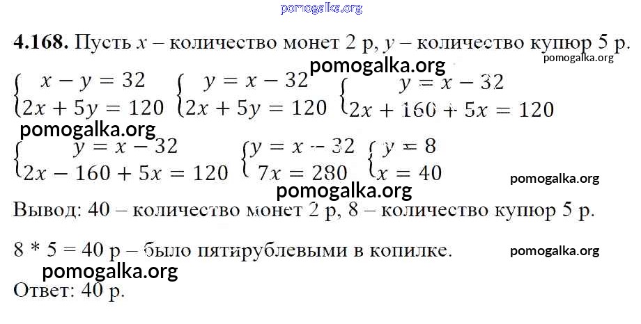 Готовые ответы - Алгебра 7 класс Арефьева И.Г. - глава 4 4.168