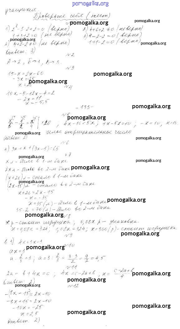 Готовые ответы - Алгебра 7 класс Дорофеев Г.В. - проверь себя упражнение Глава 4