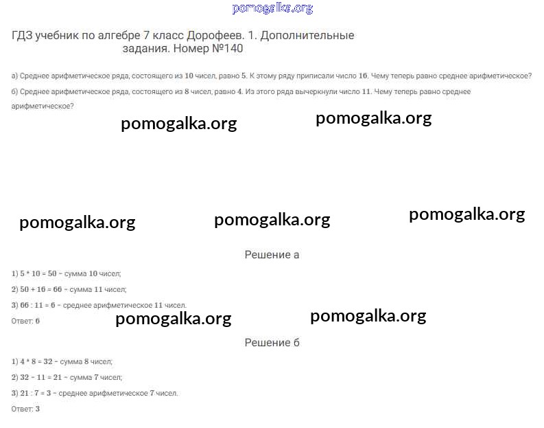 Готовые ответы - Алгебра 7 класс Дорофеев Г.В. - упражнение 140