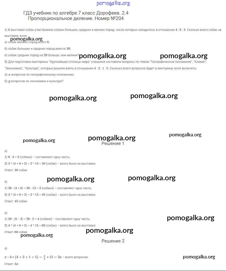 Готовые ответы - Алгебра 7 класс Дорофеев Г.В. - упражнение 204