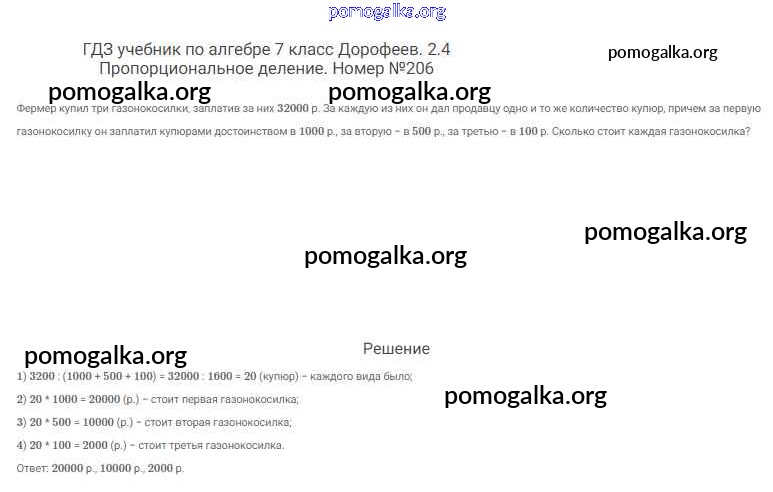 Готовые ответы - Алгебра 7 класс Дорофеев Г.В. - упражнение 206