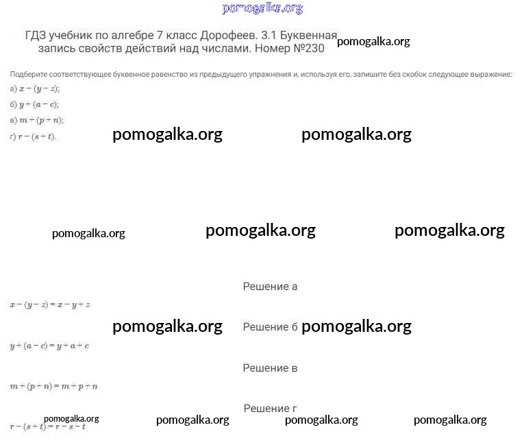 Готовые ответы - Алгебра 7 класс Дорофеев Г.В. - упражнение 230