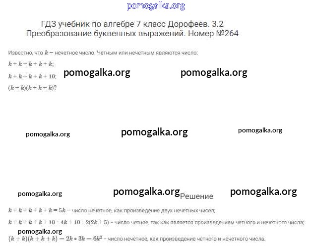 Готовые ответы - Алгебра 7 класс Дорофеев Г.В. - упражнение 264