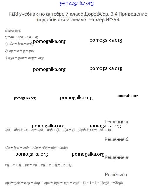 Готовые ответы - Алгебра 7 класс Дорофеев Г.В. - упражнение 299