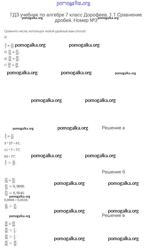 Готовые ответы - Алгебра 7 класс Дорофеев Г.В. - упражнение 3