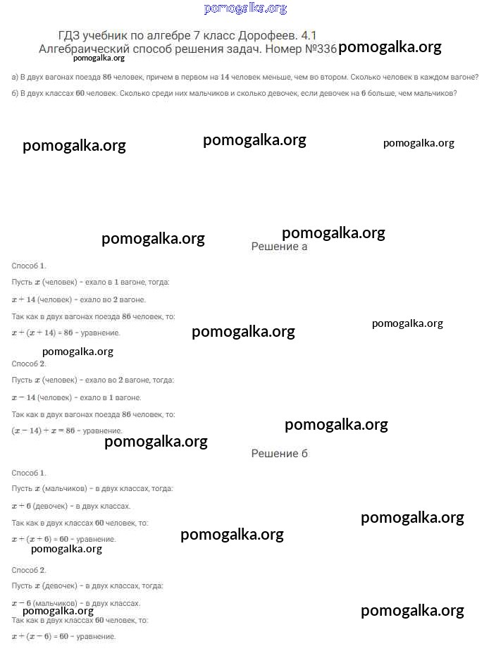 Готовые ответы - Алгебра 7 класс Дорофеев Г.В. - упражнение 336