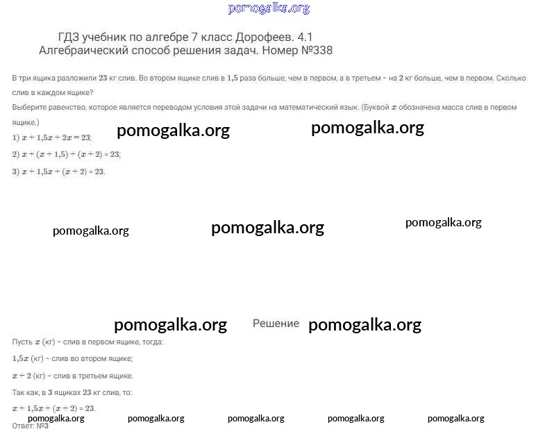 Готовые ответы - Алгебра 7 класс Дорофеев Г.В. - упражнение 338