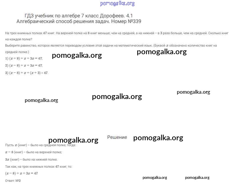 Готовые ответы - Алгебра 7 класс Дорофеев Г.В. - упражнение 339