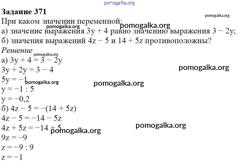 Готовые ответы - Алгебра 7 класс Дорофеев Г.В. - упражнение 371