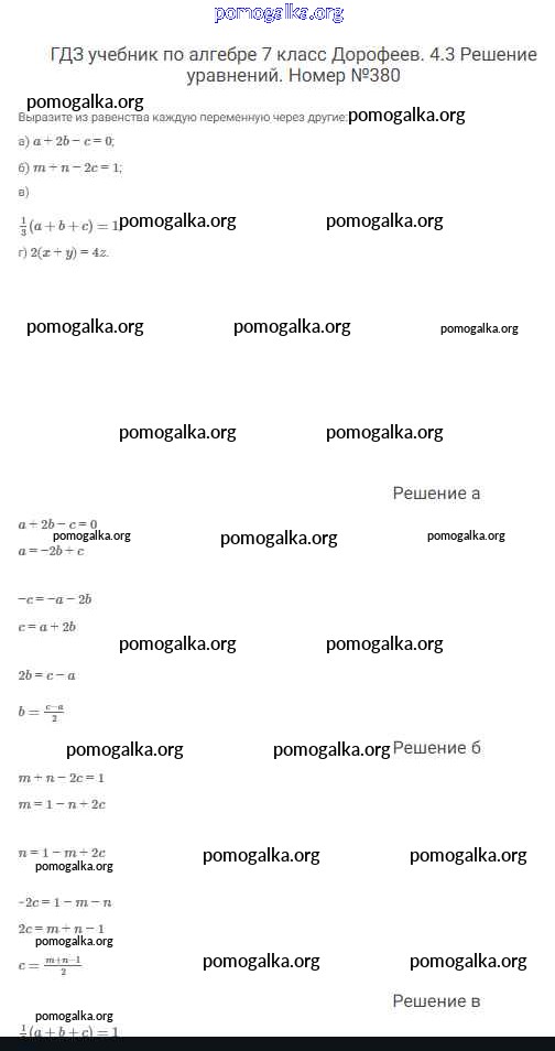 Готовые ответы - Алгебра 7 класс Дорофеев Г.В. - упражнение 380