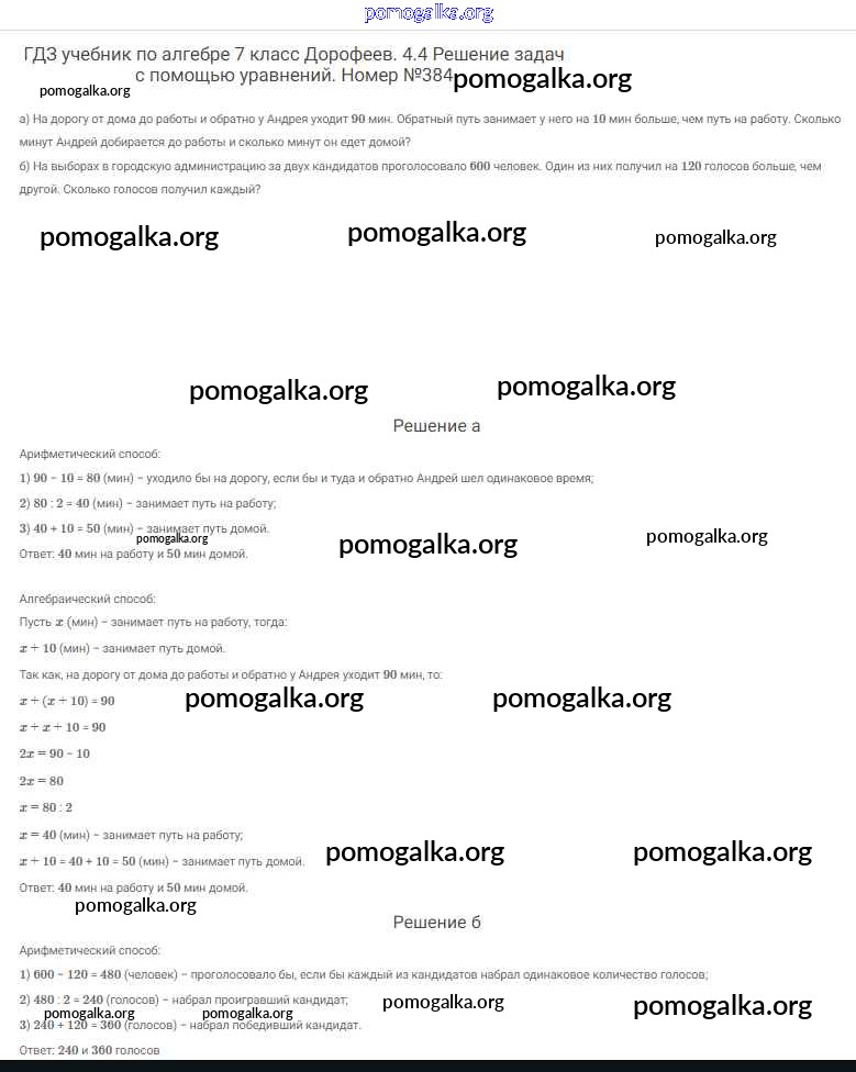 Готовые ответы - Алгебра 7 класс Дорофеев Г.В. - упражнение 384
