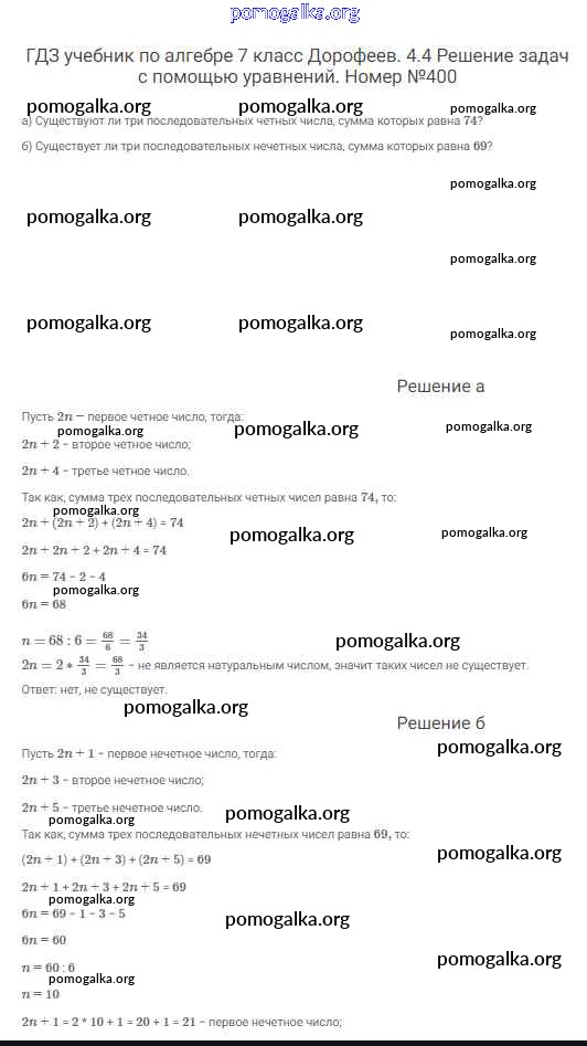 Готовые ответы - Алгебра 7 класс Дорофеев Г.В. - упражнение 400