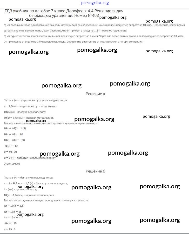 Готовые ответы - Алгебра 7 класс Дорофеев Г.В. - упражнение 403