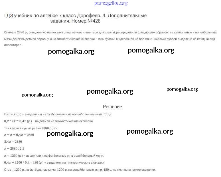 Готовые ответы - Алгебра 7 класс Дорофеев Г.В. - упражнение 428