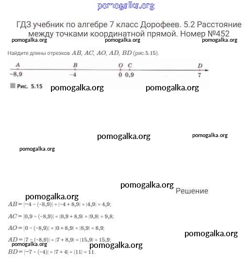 Готовые ответы - Алгебра 7 класс Дорофеев Г.В. - упражнение 452