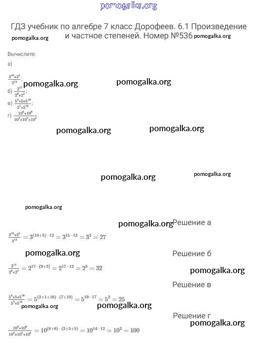 Готовые ответы - Алгебра 7 класс Дорофеев Г.В. - упражнение 536