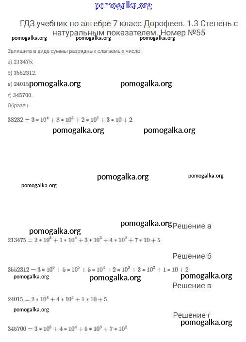 Готовые ответы - Алгебра 7 класс Дорофеев Г.В. - упражнение 55