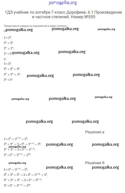 Готовые ответы - Алгебра 7 класс Дорофеев Г.В. - упражнение 555