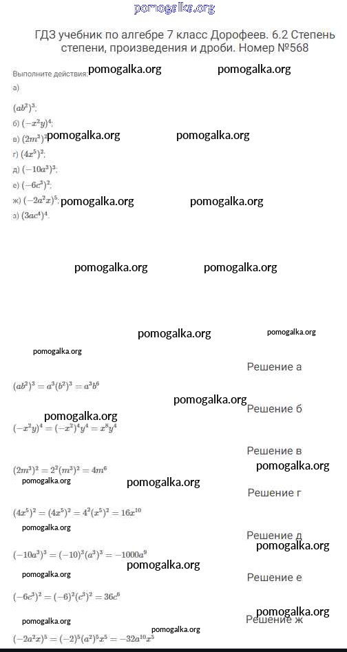 Готовые ответы - Алгебра 7 класс Дорофеев Г.В. - упражнение 568
