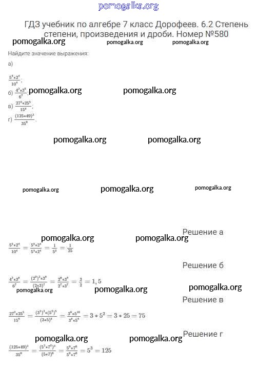 Готовые ответы - Алгебра 7 класс Дорофеев Г.В. - упражнение 580