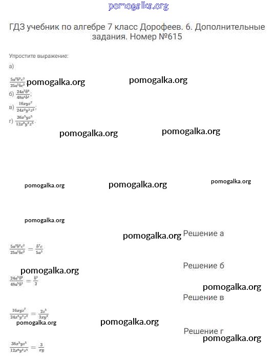Готовые ответы - Алгебра 7 класс Дорофеев Г.В. - упражнение 615