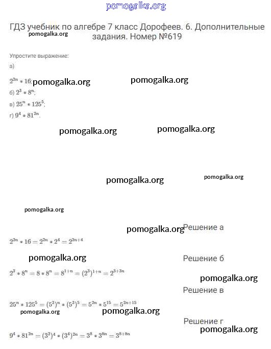 Готовые ответы - Алгебра 7 класс Дорофеев Г.В. - упражнение 619