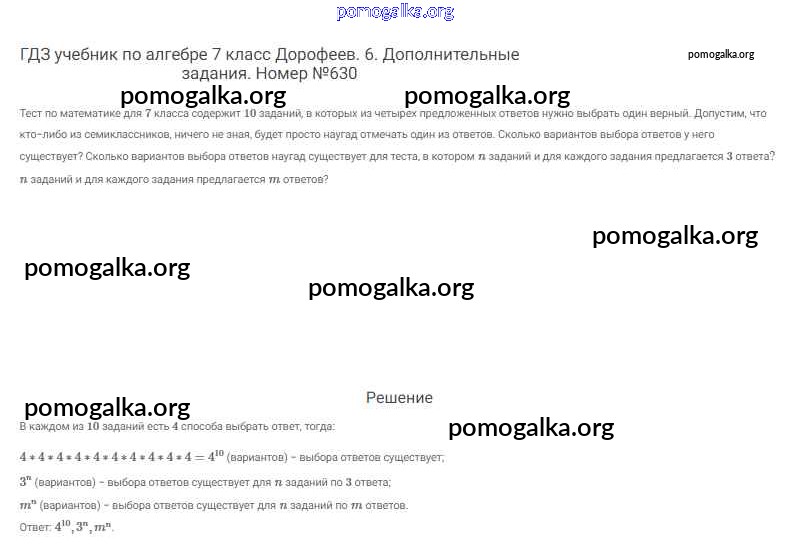 Готовые ответы - Алгебра 7 класс Дорофеев Г.В. - упражнение 630