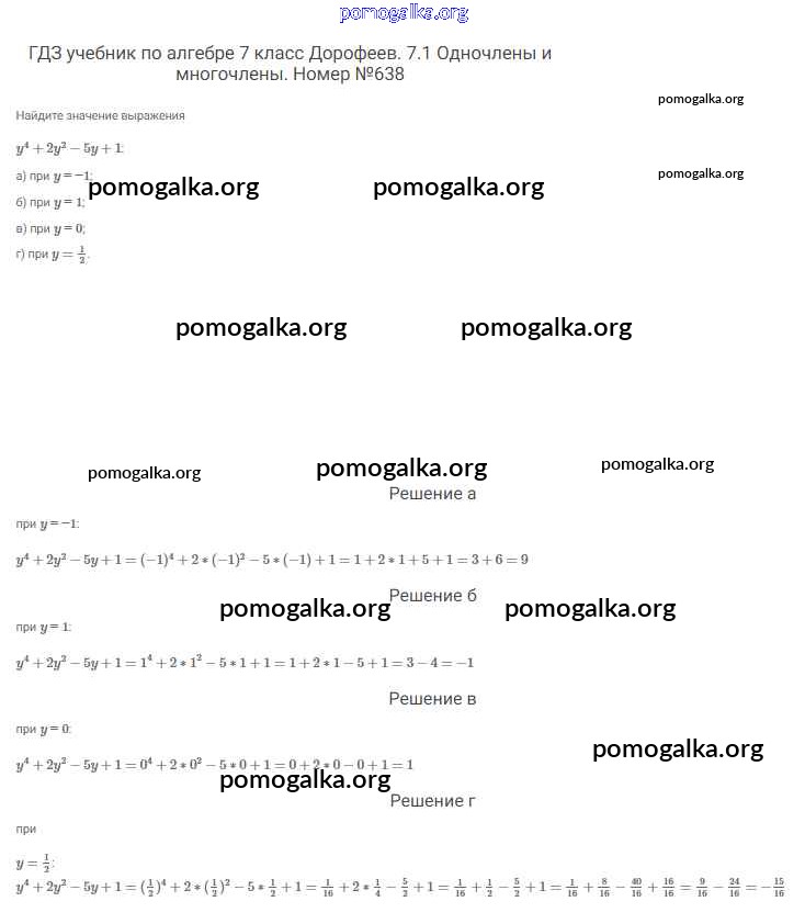 Готовые ответы - Алгебра 7 класс Дорофеев Г.В. - упражнение 638