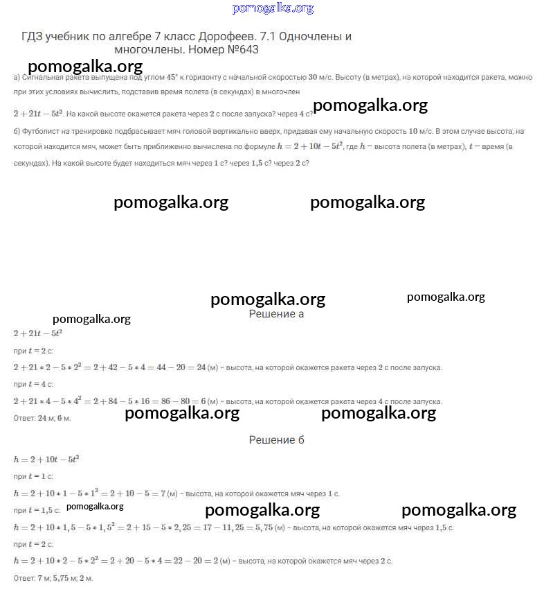 Готовые ответы - Алгебра 7 класс Дорофеев Г.В. - упражнение 643