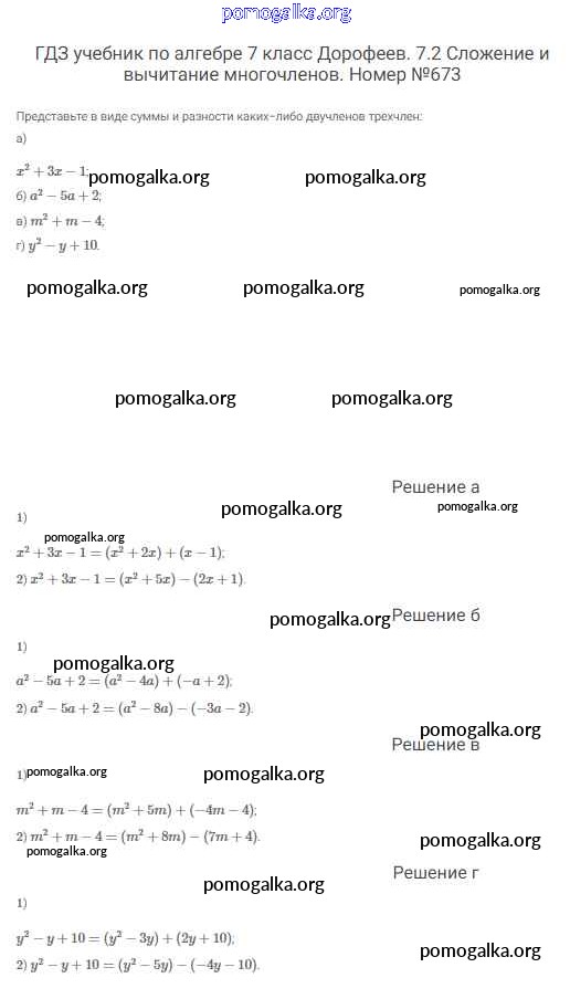 Готовые ответы - Алгебра 7 класс Дорофеев Г.В. - упражнение 673