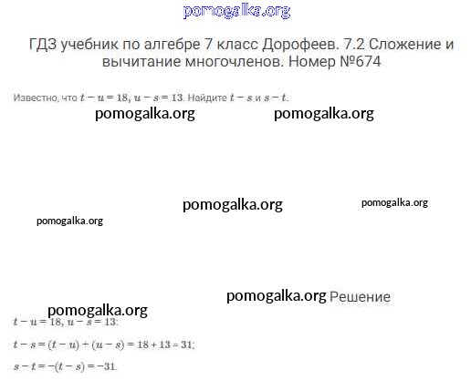 Готовые ответы - Алгебра 7 класс Дорофеев Г.В. - упражнение 674