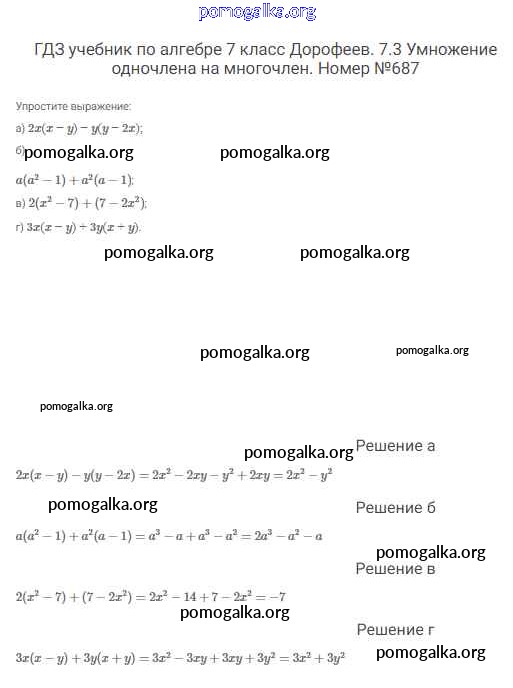 Готовые ответы - Алгебра 7 класс Дорофеев Г.В. - упражнение 687