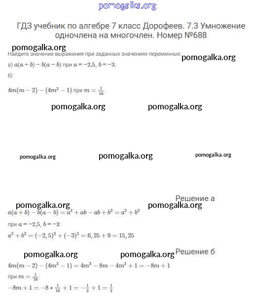 Готовые ответы - Алгебра 7 класс Дорофеев Г.В. - упражнение 688