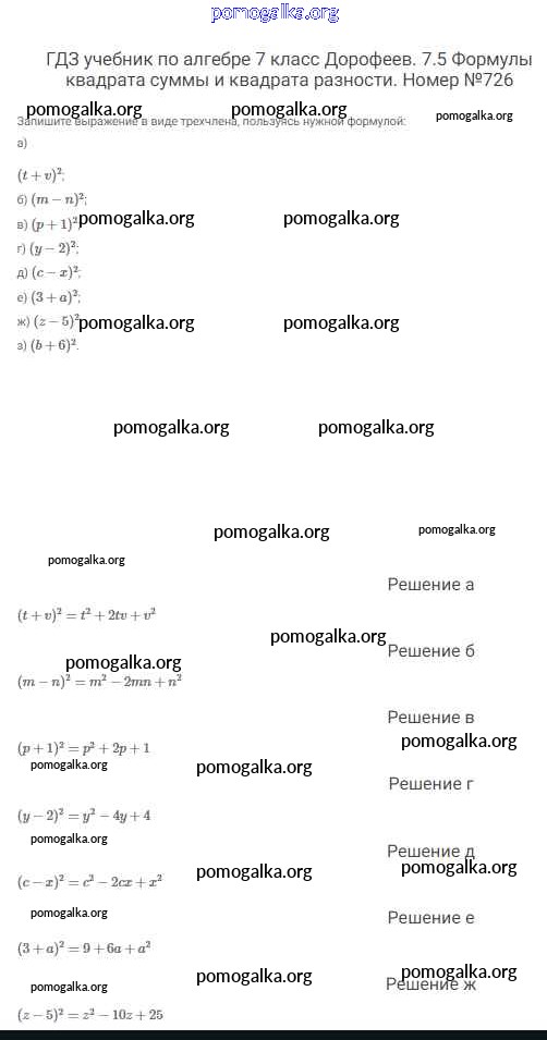 Готовые ответы - Алгебра 7 класс Дорофеев Г.В. - упражнение 726