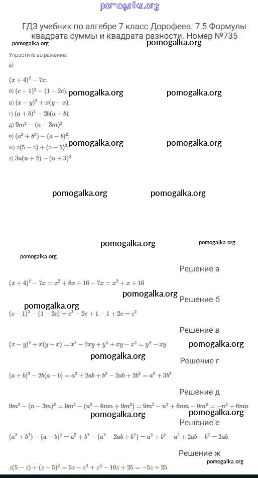 Готовые ответы - Алгебра 7 класс Дорофеев Г.В. - упражнение 735