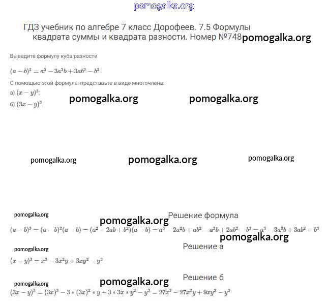 Готовые ответы - Алгебра 7 класс Дорофеев Г.В. - упражнение 748