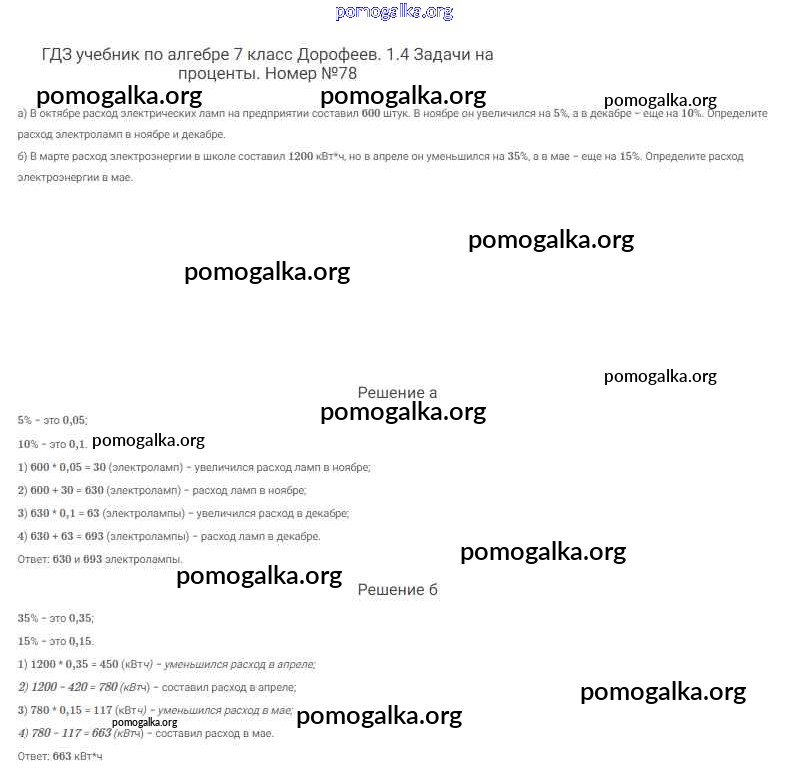 Готовые ответы - Алгебра 7 класс Дорофеев Г.В. - упражнение 78