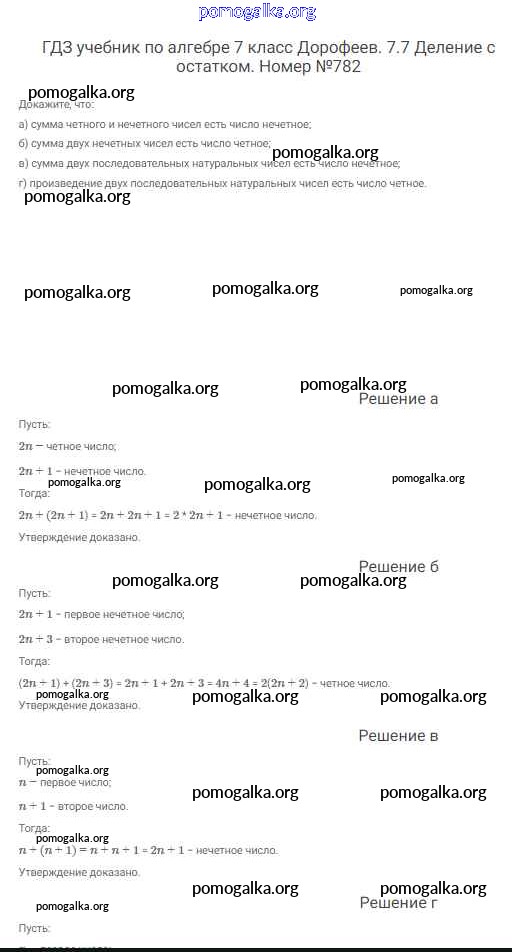 Готовые ответы - Алгебра 7 класс Дорофеев Г.В. - упражнение 782