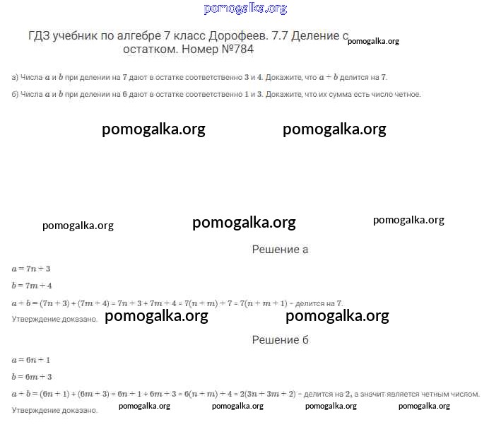 Готовые ответы - Алгебра 7 класс Дорофеев Г.В. - упражнение 784