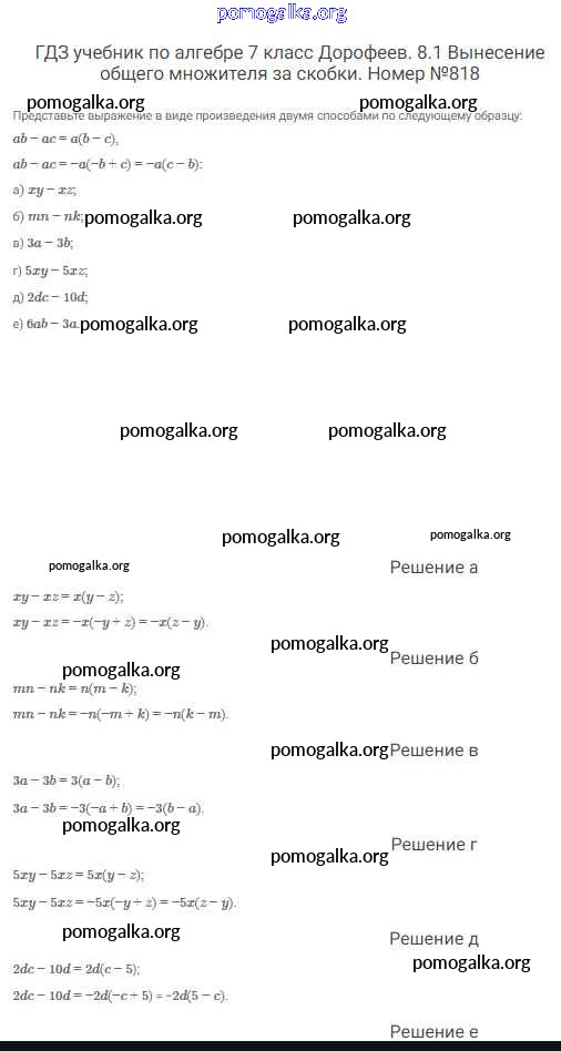 Готовые ответы - Алгебра 7 класс Дорофеев Г.В. - упражнение 818
