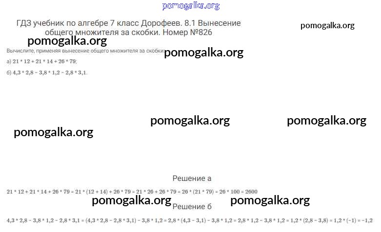 Готовые ответы - Алгебра 7 класс Дорофеев Г.В. - упражнение 826