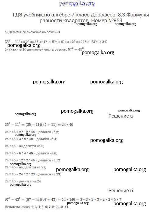 Готовые ответы - Алгебра 7 класс Дорофеев Г.В. - упражнение 853